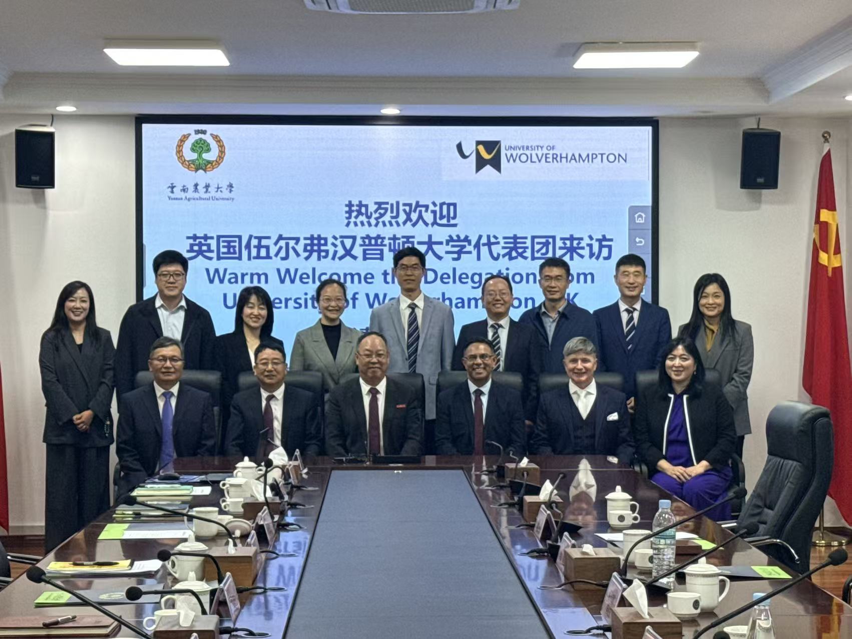 英国伍尔弗汉普顿大学校长易卜拉欣·阿迪亚教授一行四人应邀于10月16日上午到访我校。云南农业大学黄鹤平副书记、魏红江副校长及相关职能部门、学院领导出席会议。会议由魏红江副校长主持。